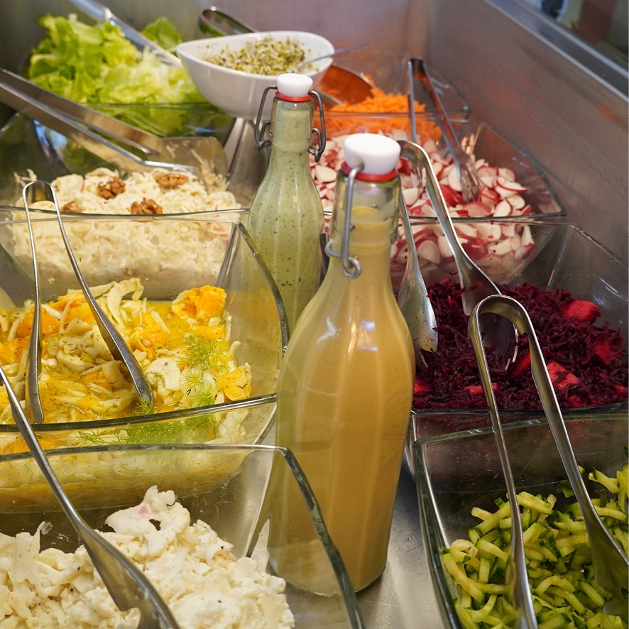 Ein strukturierter Speiseplan gibt dem Schulalltag Rhythmus: Neben dem Hauptgericht bieten wir frische Salate, Suppen, belegte Baguettes sowie täglich Pasta mit verschiedenen Soßen an. Ein Dessert oder frisches Obst runden das Angebot ab. Dabei berücksichtigen wir die individuellen Bedürfnisse unserer Essensgäste – von der Portionsgröße bis hin zu Allergien.